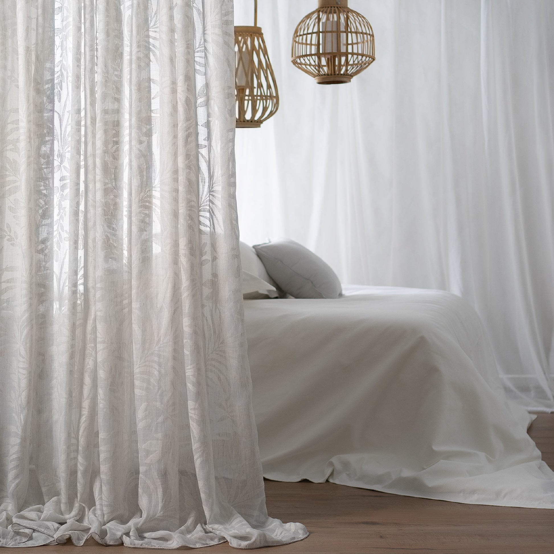 Aspen is a wonderfully soft drapery fabric with a semi-transparent nature inspired burnout pattern with a fresh, modern feel. With both linen and cotton mixed into the composition, Aspen has a very smooth hand-feel and drapes beautifully.